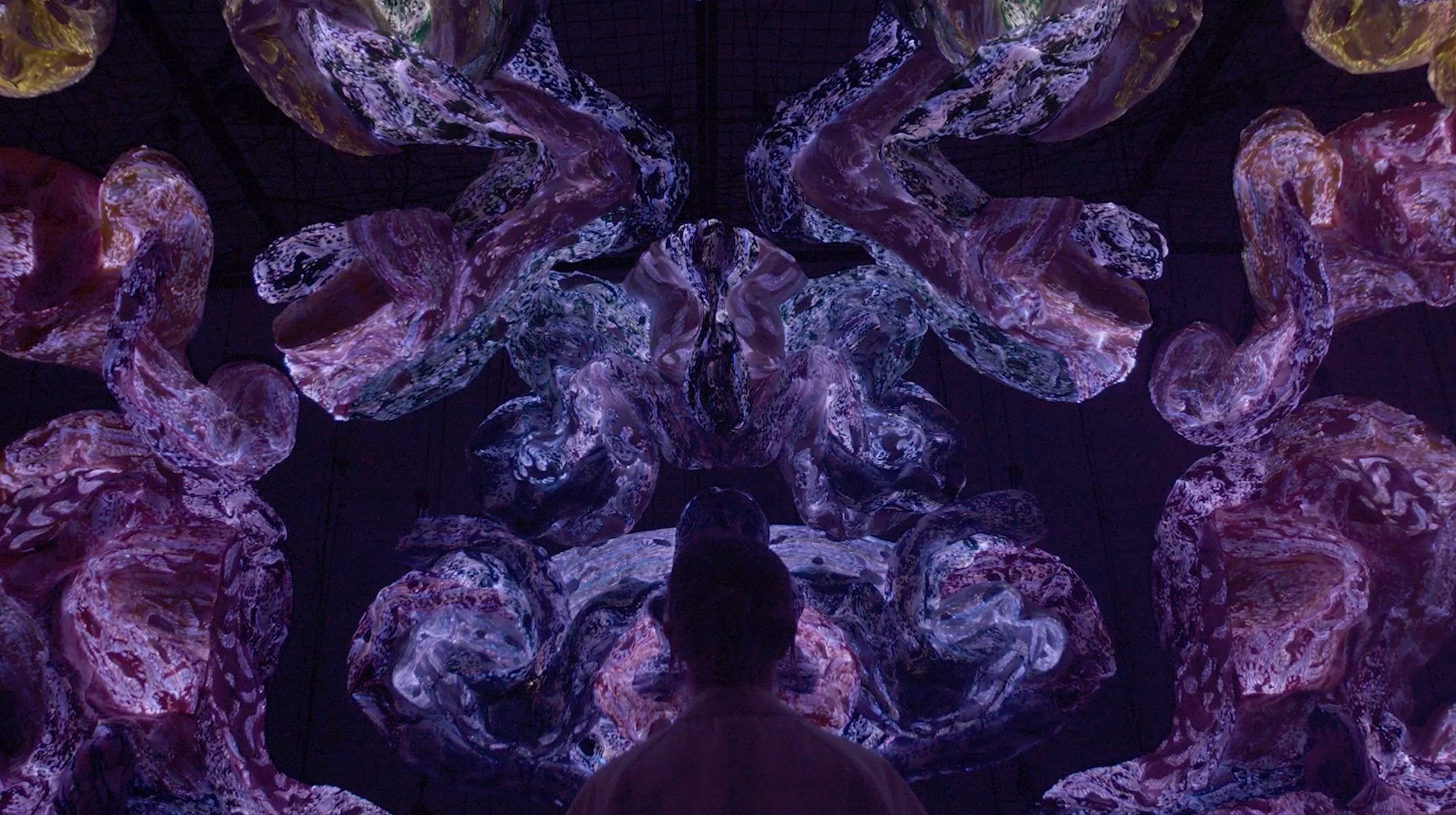 Malin & Gusaf Tadaa has created an impressive exhibition in central Stockholm. Animated fiberoptics weaved into the fabric of the art pieces, and they are all synced as a breath.